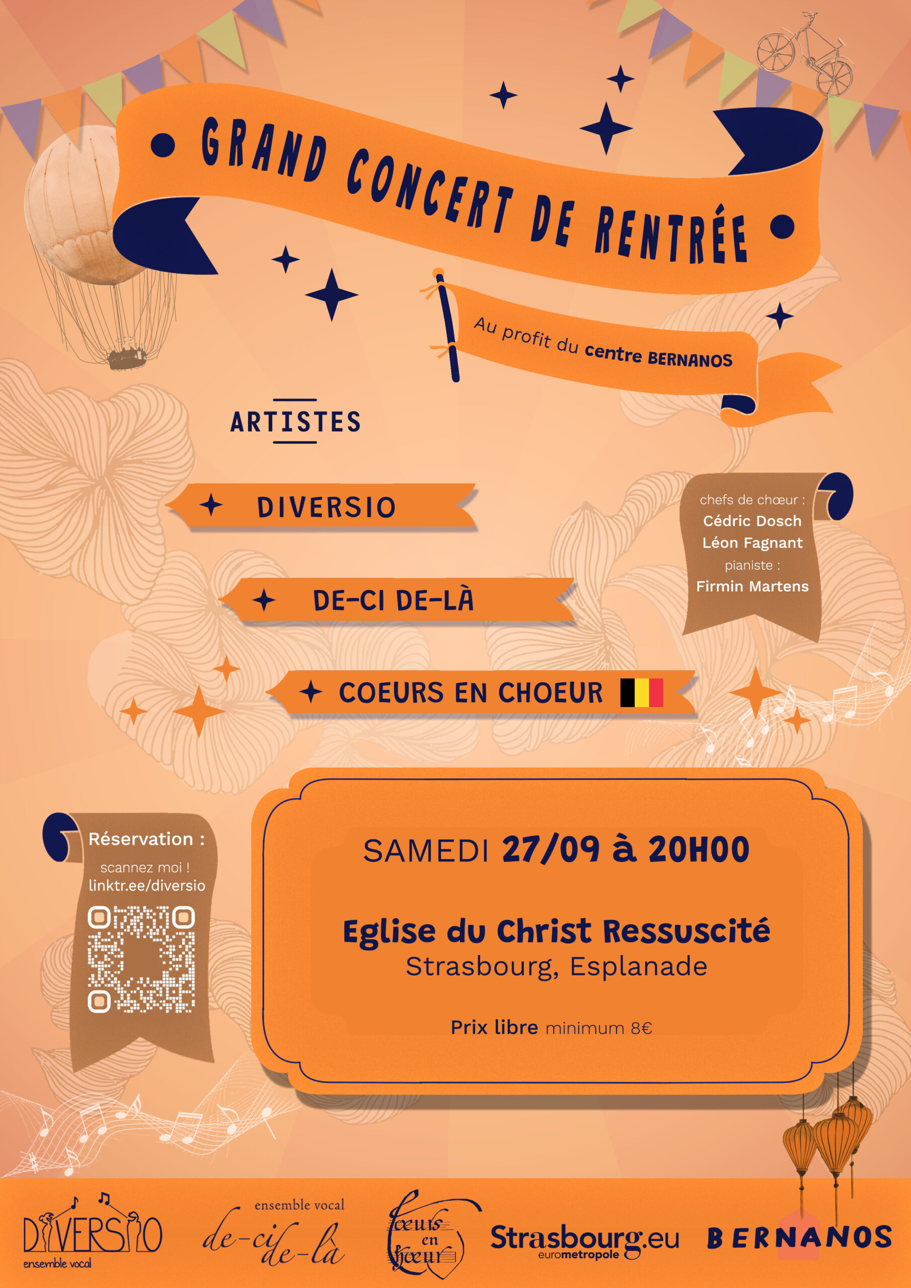 Diversio fait son cinéma Samedi 8 juin 2023 à 20h00Espace NOOTOOS (St-pierre le vieux) – Strasbourg ou Dimanche 18 juin 2023 à 18h00Salle des fêtes de Phalsbourg – Phalsbourg (57) ou Samedi 22 juin 2023 à 20h00Cinéma VOX – Strasbourg ou Dimanche 23 juin 2023 à 17h30église d’Ammerschwihr – Ammerschwihr (68)